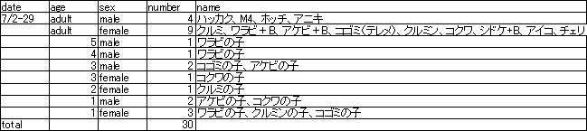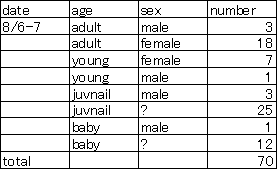 @¡‰ñ‚Ì’²¸ŠúŠÔ’†‚É‚ÍA‰‚߂Ă`2|85ŒQ‚ªA˜e–ì‘ò‘º‚ðo‚Äì“à’¬‚É“ü‚Á‚½Ž–‚ªŠm”F‚³‚êì“à’¬Šaè’n‹æ‚Å‰ŽŠQ‚ð‹N‚±‚µ‚Ä‚¢‚é‚Ì‚ªŠm”F‚³‚ꂽB‚Ü‚½ð”N‚©‚ç‚ÌŒœˆÄ‚Å‚ ‚Á‚½‚nŒQ‚Ì•ª—ô‚àAð”N‚Ì’²¸‚Ɉø‚«‘±‚«—V“®ˆæ“à‚É‚QŒQ‚É•ª‚©‚ê‚Ä‚¢‚é‚Ì‚ªŠm”F‚³‚êA¡‰ñ³Ž®‚É‚n1ŒQA‚n2ŒQ‚Æ‚³‚ê‚é‚È‚ÇB‚Q‚‚̑傫‚Èo—ˆŽ–‚ªŠm”F‚³‚ꂽB